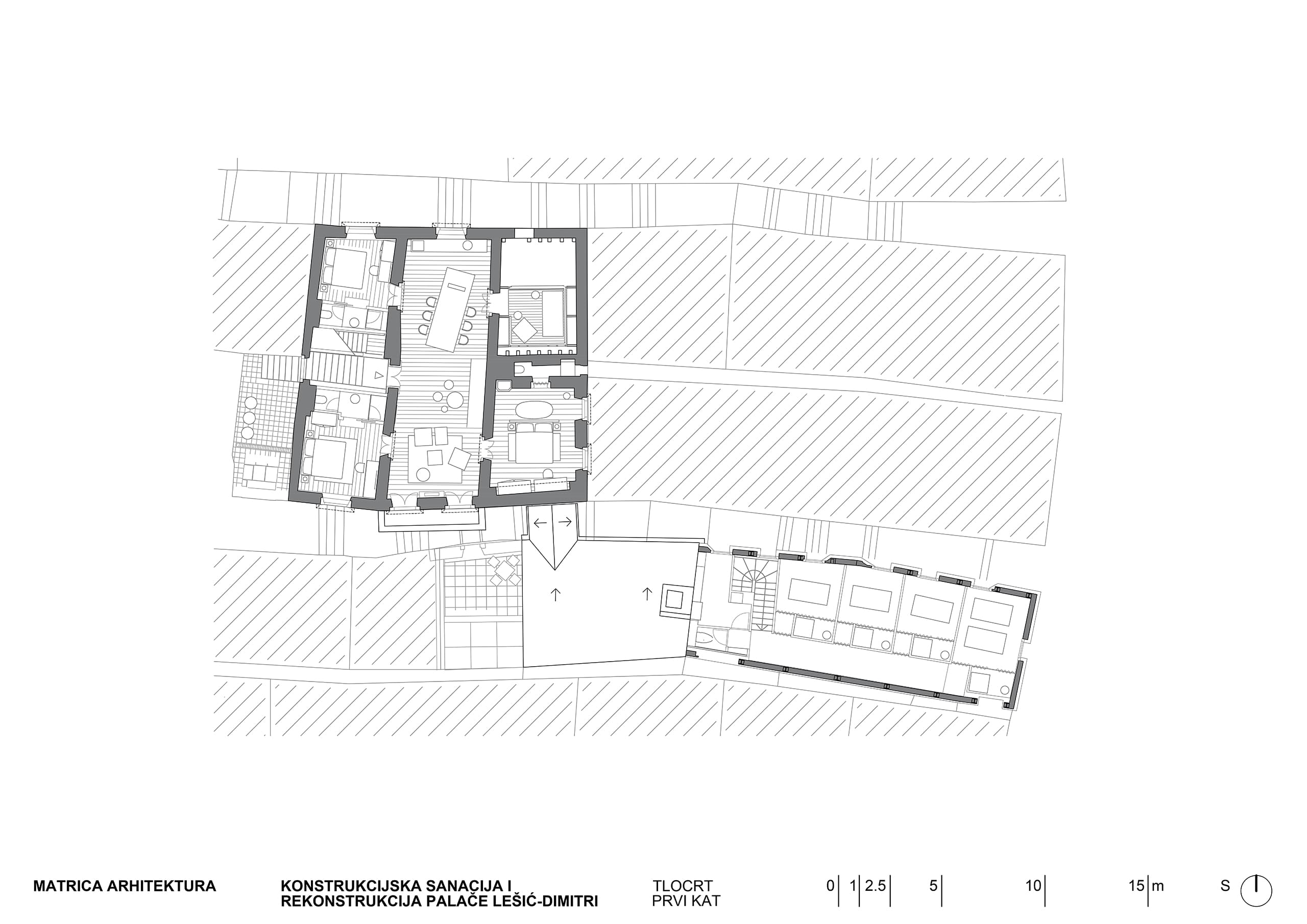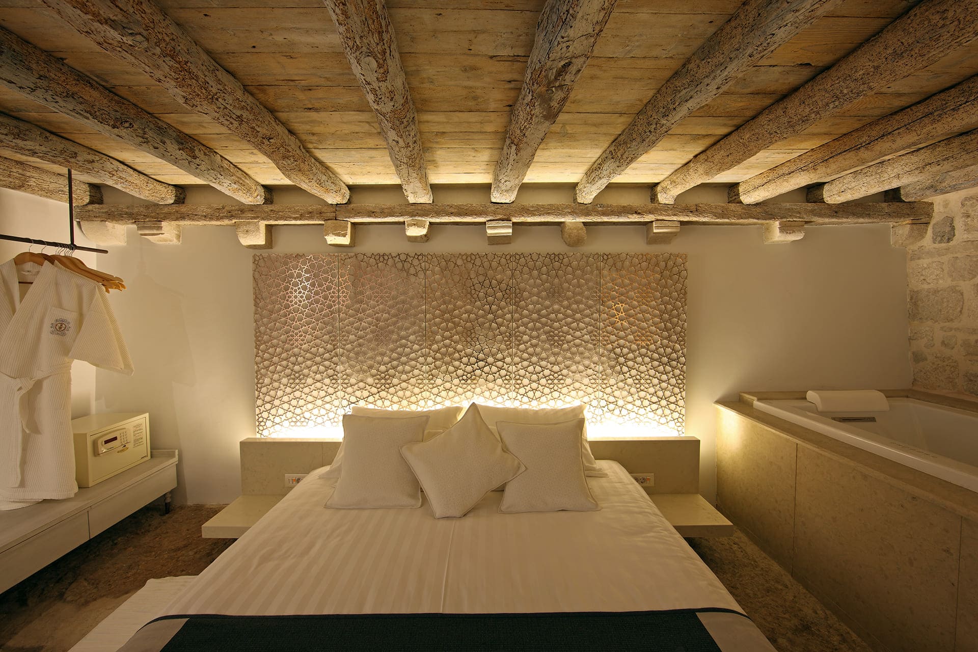 Zapuštena srednjovjekovna palača u starom gradu Korčuli potpuno se rekonstruira te prenamjenjuje u luksuzni boutique hotel. Postojeći kameni konstruktivni dijelovi i kamena plastika zadržavaju se i prezentiraju, dok se nekvalitetne recentne dogradnje nadomještaju suvremenim elementima nenametljivog no suvremenog izraza, u skladu s postojećim elementima.